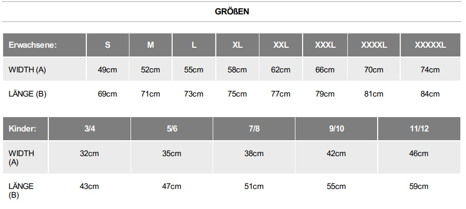 190g Roly Shirt - fällt etwas kleiner aus siehe Tabelle.